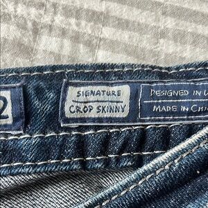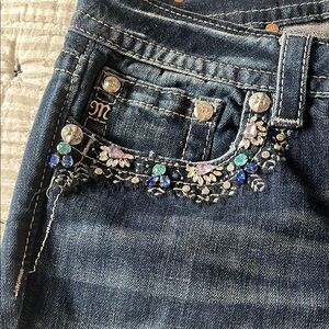 Stylish and comfortable women's blue jeans perfect for any casual outing. These are in perfect condition. Zip up with button closure w/ 5 pockets. Thick silver stitching!