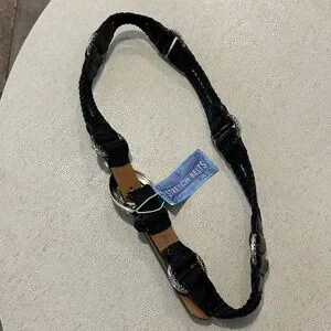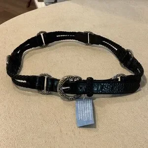 Brighton Black Leather Stretch Vintage Belt with Silver Plated Hardware Size 40