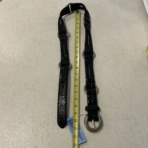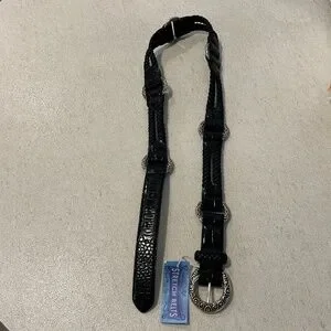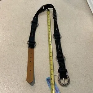 Brighton Black Leather Belt with Silver Plated Hardware Size 40