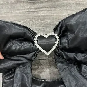 Dolls Kill Lady Royal Shoulder Bag in the color black. Brand new. I thought I would use this more than I thought I would. Kept in packaging after taking it out to try on and take pictures. Super cute oversized bow and rhinestone heart zipper detail.