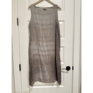 EILEEN FISHER 100% Silk Boat Neck Shift Dress Large Oxidized Cobblestone Taupe