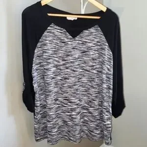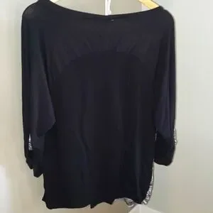 Dept 222 Black White ¾ Sleeve Top 2XL Open Back Detail