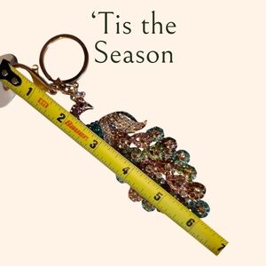 Peacock NEW Bag Charm Key Ring KeyHolder Approx Measure. 6in X 2in Rhinestones
