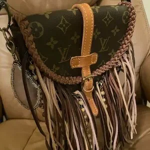 Louis Vuitton Brown Monogram Crossbody Bag with Fringe vintage boho