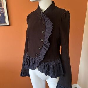 NWT FREE PEOPLE military style black women’s ruffled blazer