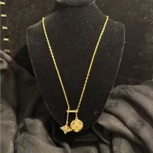 Louis Vuitton Star Logo Gold Crystal Pendant Necklace