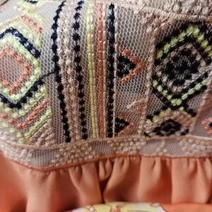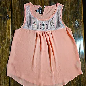 EUC A. Byer Size Small Peach sheer sleeveless top w/embroidery design