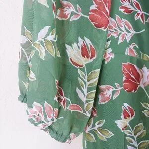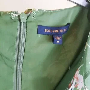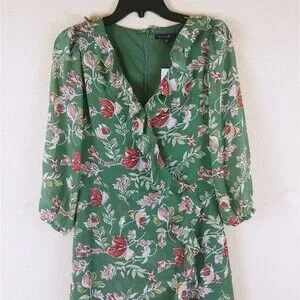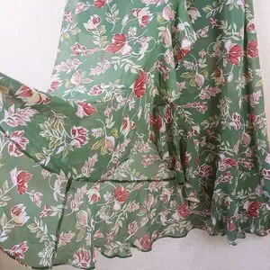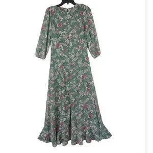 Skies are Blue green maxi dress floral ruffle trim 3/4 sleeves size Medium