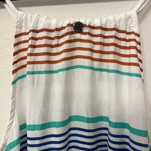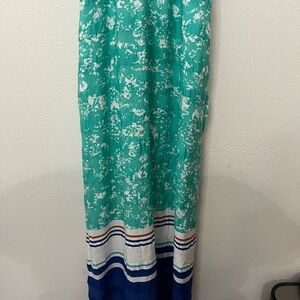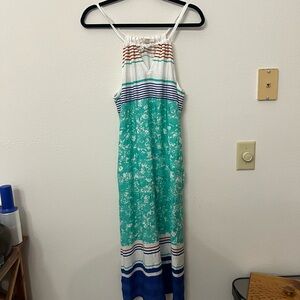 Prana Blue White Maxi Dress Halter Summer Floral Stripes Neckline Size M