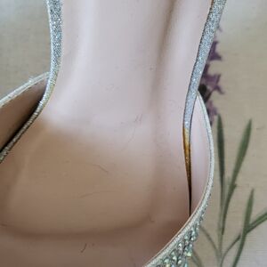 Mile high stripper style platforms with silver glitter and pink to blue iridescent rhinestones allover. Zips up the back. Like new, all crystals intact and barely any wear on the sole