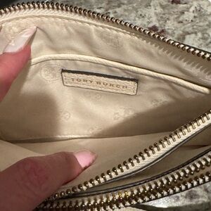 Elevate your style with the Tory Burch Cream Crossbody Bag. Perfect for any occasion, this elegant bag features a sleek design and a versatile cream color. This bag is brand new never been used. Does not have the tags on it because it was a gift. I included a picture of the length of the bag when wearing. I am 5‘2“ for reference. Dimensions are 6L x 9W