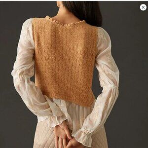 Anthropologie Layered Sweater Vest Blouse Tan White Sheer Floral Women's Medium