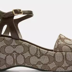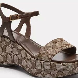 🤎 COACH- GALE WEDGE SANDAL IN SIGNATURE JACQUARD 🤎