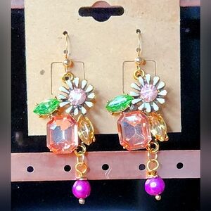 Elegant Gold and Multicolor Floral Earrings