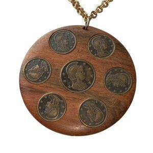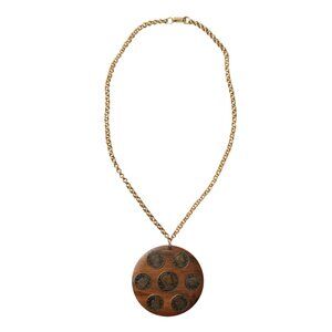 Tags: vintage, unique, necklace, warriors, coins, circle, round, wood,