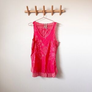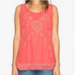 Coral color eyelet lace tank top. In excellent condition with no visible flaws.