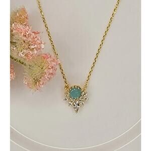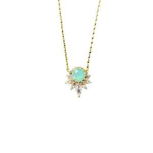 Green Opal and CZ 14k Gold Plated Deco Necklace
