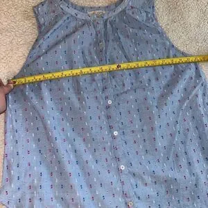 LOFT Women’s Button Up Light Blue with Colorful Embroidered Dots Size Large