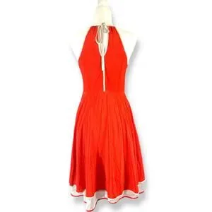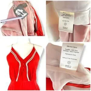 Girls From Savoy Anthropologie Misty Red Silk V-Neck Mini Dress ASO Kelly Clarkson Size 4 This Anthropologie dress is 100% Silk with spaghetti straps, silk covered buttons, and a flowy skirt. It has a hidden zip closure at the side and tie at the back of the neck to adjust the fit. It also is fully lined. Belt is missing.