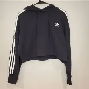 Adidas Black and White Women's Crop Boxy Hooded Sweatshirt Size small