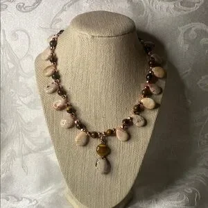 Handcrafted Pink Turquoise and Tiger’s Eye Necklace