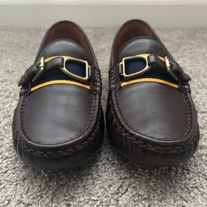 Step out in style with these elegant Polo Ralph Lauren Men's Anders Driving Style Loafer Shoes. Color Dark Brown. Size 8.5. Pull-On. 100% Cow leather loafers. In Excellent Pre-owned Condition. Used only once. Like new. Perfect for any occasion, these shoes offer both comfort and sophistication.