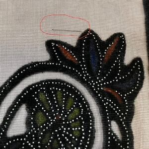 This is a vintage shawl/wrap in silk and velvet with rectangles throughout and colorful velvet diamond shapes and paisley throughout. The scarf/wrap shows some signs of wear, however still has plenty of left left in it. The scarf/shawl has a few snags and they are highlighted in photos (#7 thru #11), with one small pin hole on photo #6.