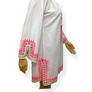 Debbie Katz Embroidered Cotton Tunic Beach Dress Swim Cover-Up Size M