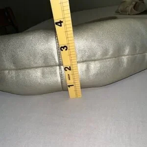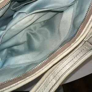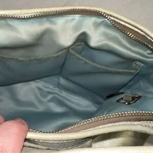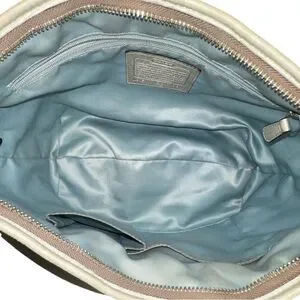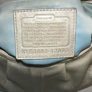 Crafted with sophistication in mind, this Coach Ergo shoulder hobo purse is an embodiment of both functionality and style. Its luxurious gold leather exterior pairs seamlessly with a variety of outfits, making it a versatile choice for business meetings, casual outings, formal events, or travel. The crescent shape and silver hardware accents add a touch of elegance, while the blue fabric lining offers a pop of color.
