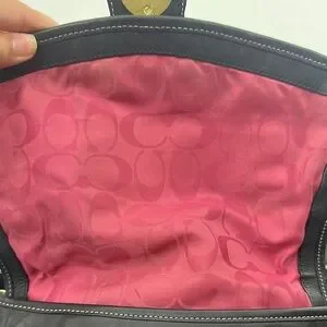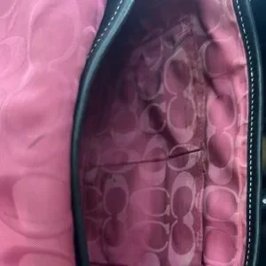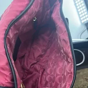 Coach 65th Anniversary Black Turnlock Shoulder Bag with Pink Interior. Some marks/stains inside the bag, tarnished hardware. Good condition.