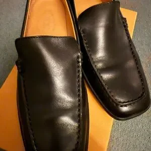Step out in style with these sleek black Tod’s leather loafers. Perfect for any occasion, these shoes offer both comfort and elegance. They are gently worn. Very good condition.