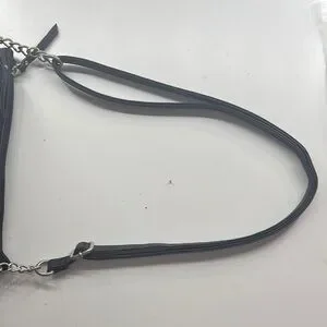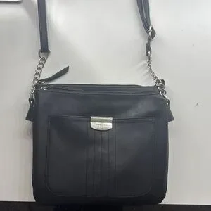 Sleek and stylish black leather crossbody bag with silver accents. Perfect for everyday use.