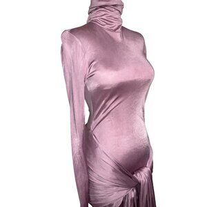 Helsa Slinky Jersey Sarong Maxi Dress in Elderberry Medium New Womens Long Gown