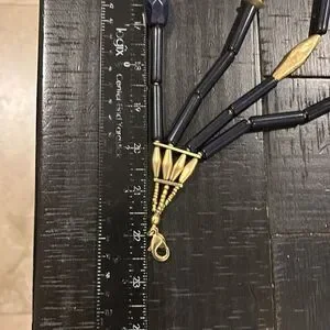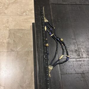 This stunning necklace features a blend of gold and blue beads, perfect for adding a touch of elegance to any outfit. The intricate design showcases a harmonious mix of colors, making it a versatile accessory for any occasion.