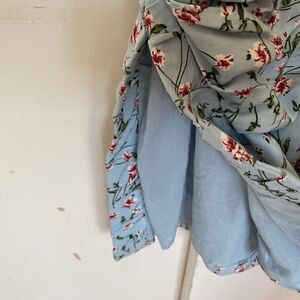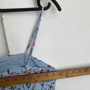 Bardot ruched midi dress Size 8 Medium Sky Roses Floral Side Slit Blue. Condition is Pre-owned. Shipped with USPS Ground Advantage.