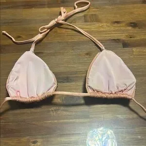 Luxurious Pink and Gold Triangle Swim Bra with Beadwork