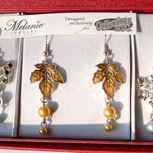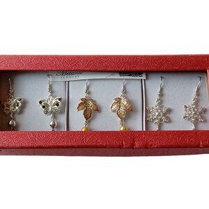 3 Pairs of Dangle Earrings, Butterflies, Leafs, Snowflakes