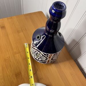 Vintage Israel Hand Painted Floral Pottery Bud Vase Blue White Orange MCM Style