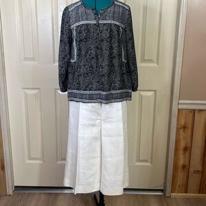Rebecca Taylor Women’s Silk Patchwork Black and White Print Blouse, 3/4 Sleeves, Button Cuff, Size 4, Excellent preowned condition, 100% silk, - no flaws****MEASUREMENTS ARE IN PICTURES***MAKE ME A REASONABLE OFFER***BUNDLE 2 OR MORE ITEMS FROM MY CLOSET FOR ADDITIONAL DISCOUNTS IN PRICING AND SHIPPING***