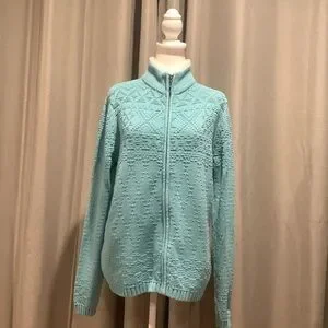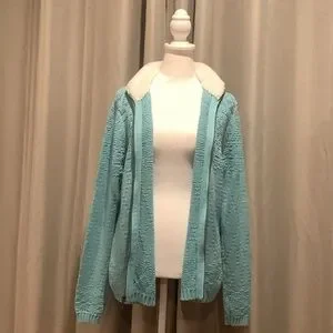 Croft & Barrow Full Zip Turquoise Jacket with Sherpa Collar Size Large