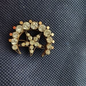 Vintage Czech White Rhinestone 12K GF Star & Moon Brooch