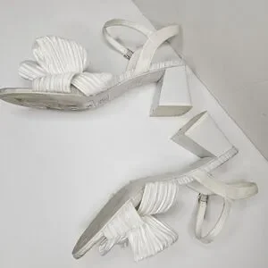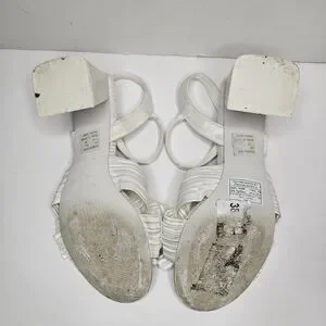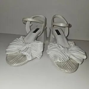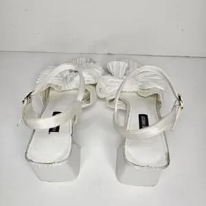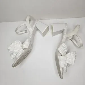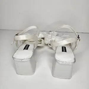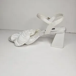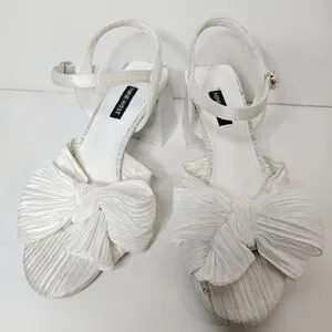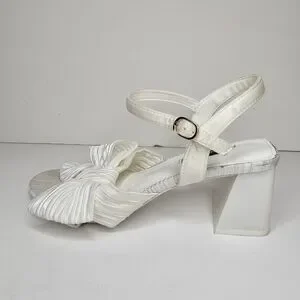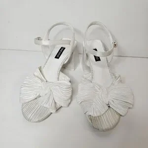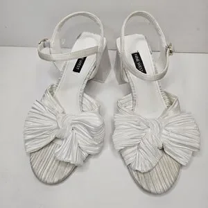 Nine West Open Toe All White Bow Sandal Chunky Heel Size 7.5