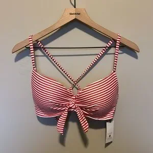 New with tag Shade & Shore Bikini top 80% Nylon, 20% Spandex lightly padded for support Front-tie bikini top Striped pattern on a textured backdrop for a classic look, easily matched with any bottoms! Adjustable straps and back tie-detailing allow you to find a perfect fit. Soft and stretchy fabric for a comf all day wear