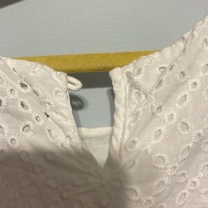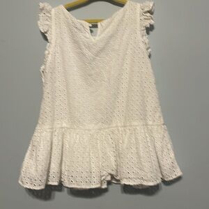 Charming white eyelet top with ruffle sleeves. Perfect for a casual day out.