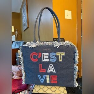 Karl Lagerfeld NWT Classic Karl Navy Wash Denim Large C’EST LA VIE Tote (P088)