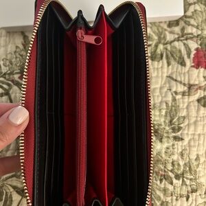 Sleek navy leather wallet by Dooney & Bourke. Features a classic design with a zip closure. In perfect condition.
