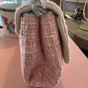 Chic and stylish pink tweed bag perfect for any occasion. Features a sophisticated design with a touch of elegance and silver accents. Perfect for spring and summer! NWT