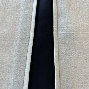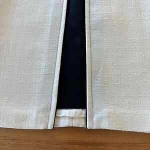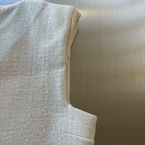 Giambattista Valli Paris white crêpe, sleeveless giraffe with black detail down the front. Beautiful shape -very flattering. There is no apparent size tag but it fits like a size 6. The fabric is a very thick and sturdy crêpe. The waist is 34 inches, the best measures 34 inches, and the length is 35 inches.