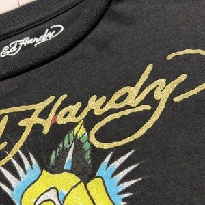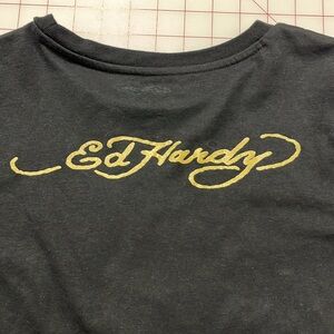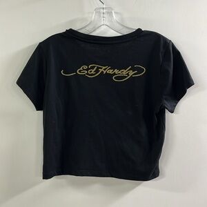 ED HARDY Novelty Print Black Crop Short SLV T-Shirt SZ L (youth) XS/S (adult)