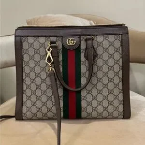 Gucci OPHIDIA LARGE TOTE BAG Brown and Green Women's Bag